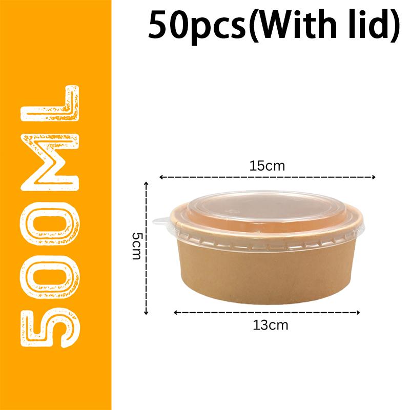 50-Pack 500Ml 750Mldisposable Salad Bowls - Kraft Paper Bowls With Transparent Lids Multiple Options