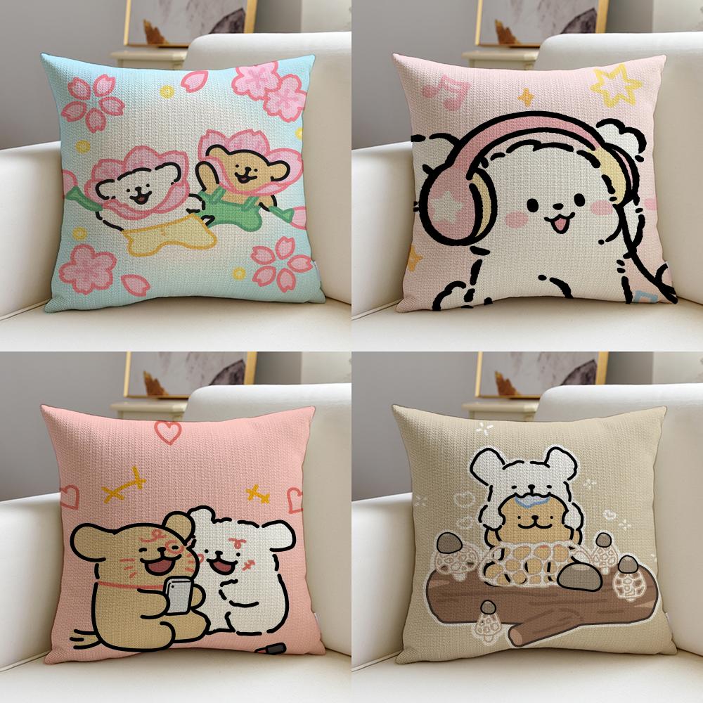 Friendly LLine Friends PuppyS Cushion Cover Breathable and Skinfriendly Linen Pillowcase Square Removable and Washable Cushion
