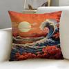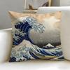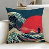 Classic Art Theme Japanese Waves Cushion Cover Soft EasyWash Pillow Case Versatile for Couch Bed Travel and Office