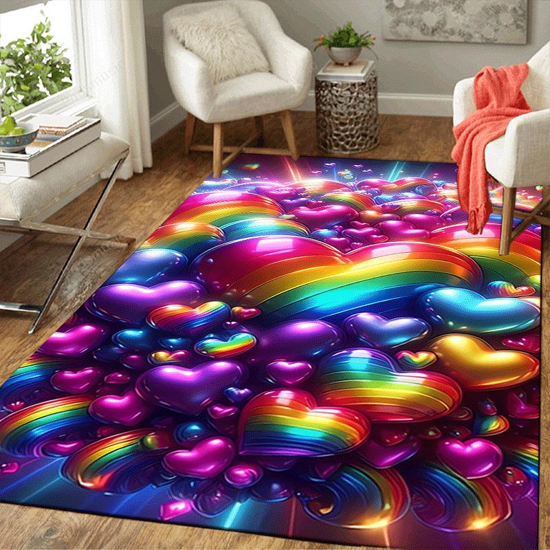 1pc Colorful Love Design Area Rug - Soft, Anti-Slip, and Durable Gaming Room Decor for Bedroom