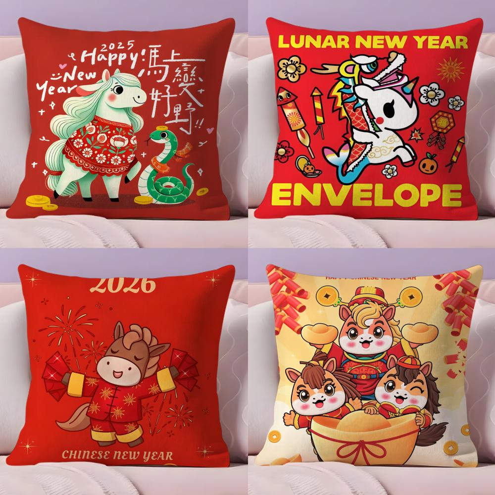 Happy Spring Festival Cushion Cover Short Plush DoubleSided Printing Home Machine Washable In Warm Winter Pillow Case