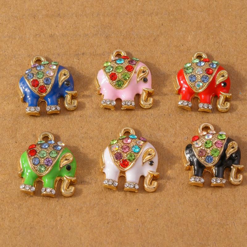 10pcs Enamel Crystal Rhinestones Animal Elephant Pendants Charms for Jewelry DIY Earrings Necklace Bracelet Accessories