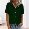 Women's Fashion Color Standing Collar Short Sleeve Button-Up Shirt T-Shirt Top