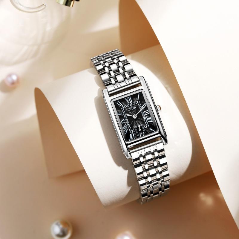 Creative Independent Second Hand Light Luxury Roman Scale Small Square Plate Waterproof Quartz Stainless Steel Retro Women'S Watch