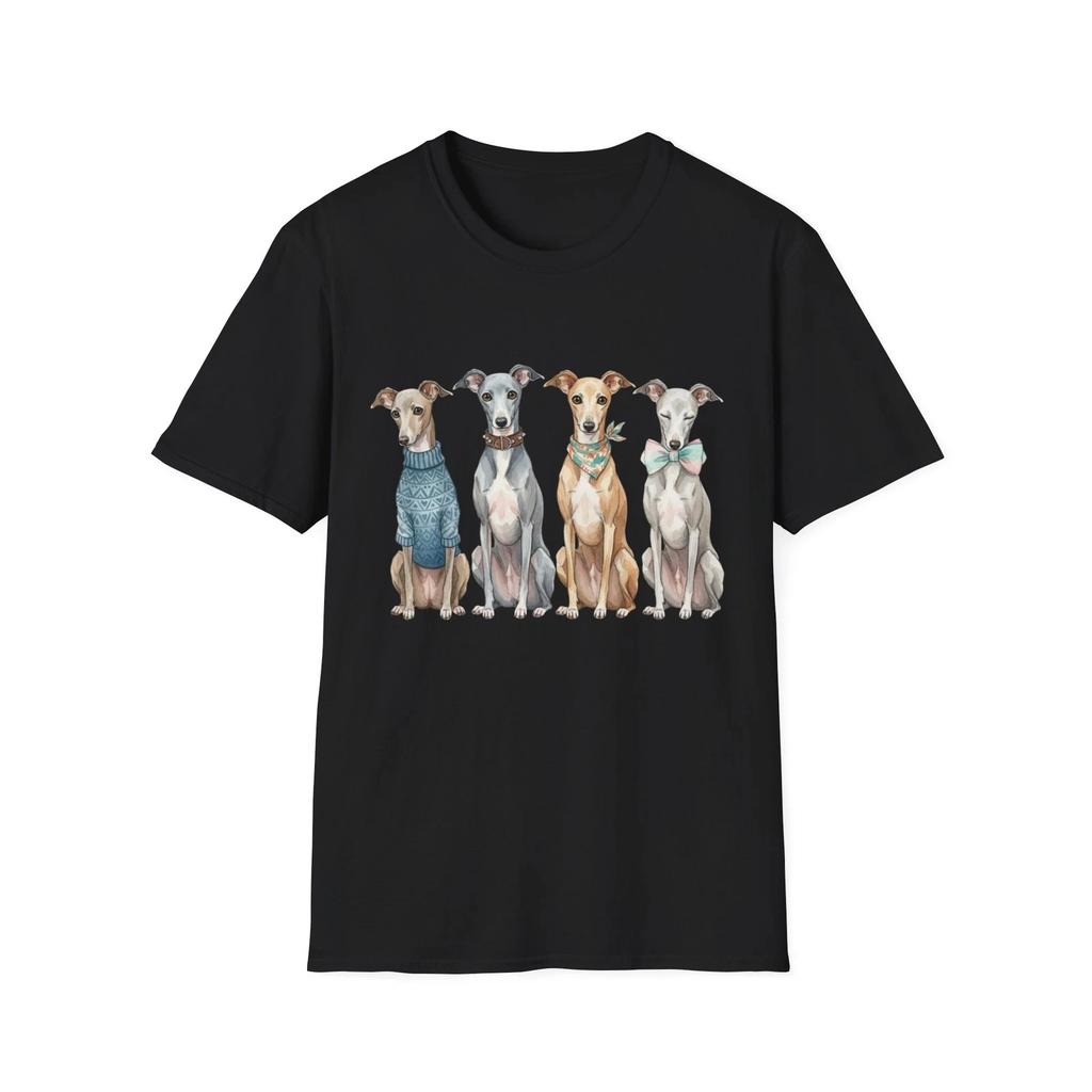 Italian Greyhounds Watercolor Cute Dog Fashion Black Tee Adorable T-Shirt