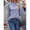 2026 New Women's Solid Color Fashion Versatile Hollow Out Stand Collar Puff Sleeve T-Shirt Casual Top