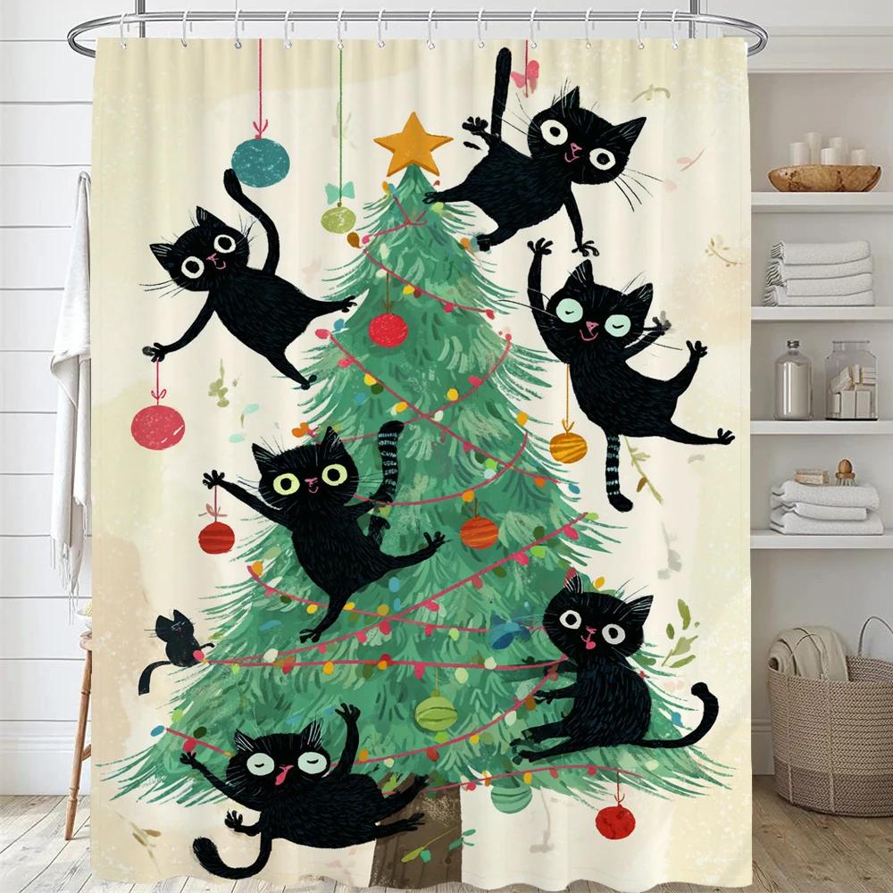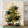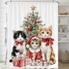 Christmas Shower Curtain,Winter Christmas Shower Curtains for Bathroom,Cute Christmas Cat Shower Curtain,with Hooks