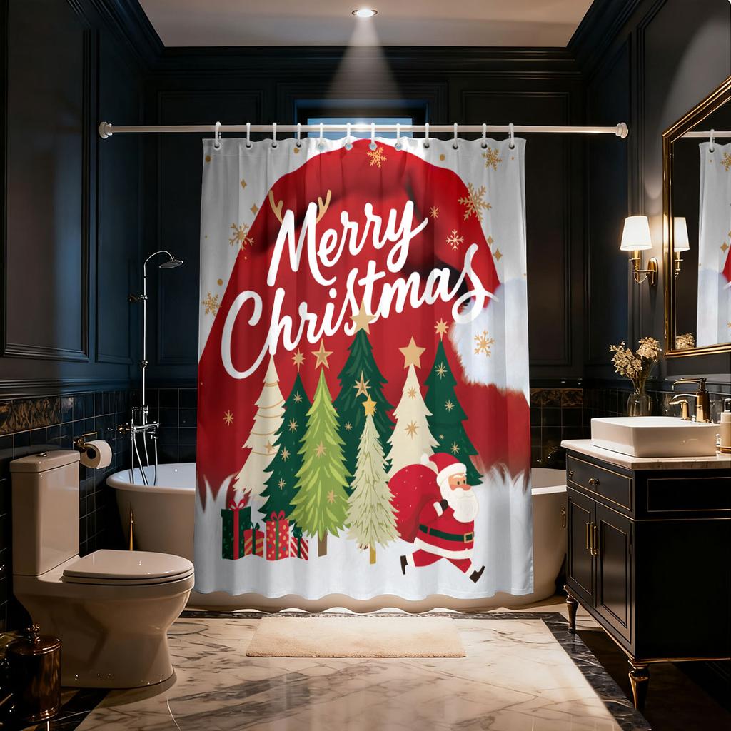 1pc Merry Christmas, Christmas Tree Printed Waterproof Shower Curtain, Privacy Hanging Curtain with 12 Hooks, Multiple Sizes