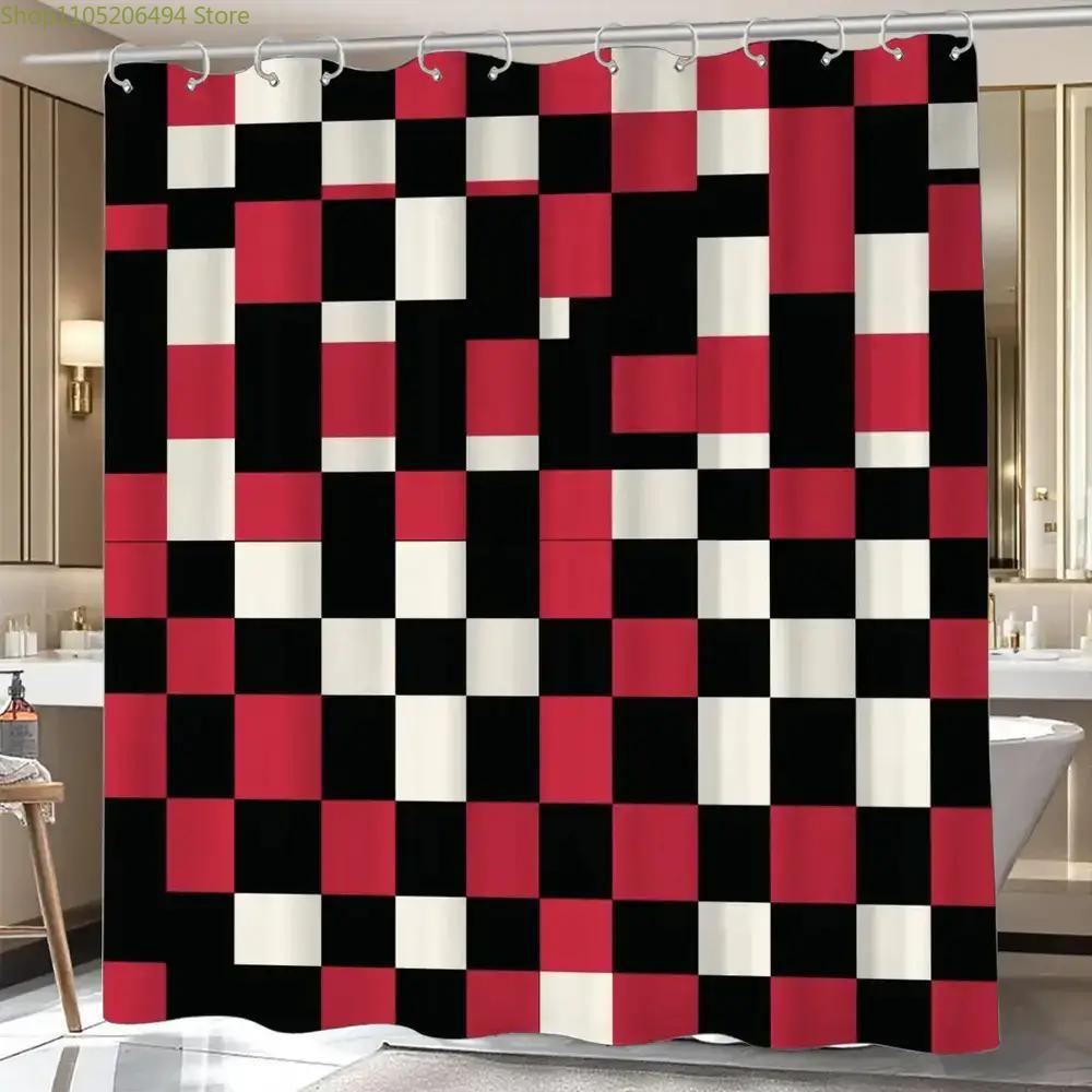 A Bathroom Shower Curtain, Puzzle Competition, Red Festive Shower Curtain, Includes 12 Hooks, 70.87*70.87inch Bathroom Window