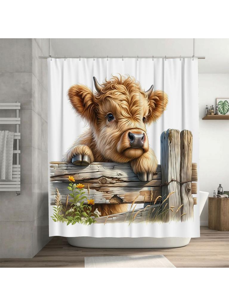 Cute Highland Cow Waterproof Shower Curtain Heat Resistant Machine Washable Non-Transparent 180x180cm
