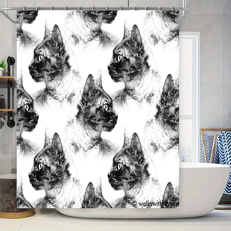 Black and White Cat Pattern Shower Curtain Decoration for Bathroom Waterproof Printing Home Decor