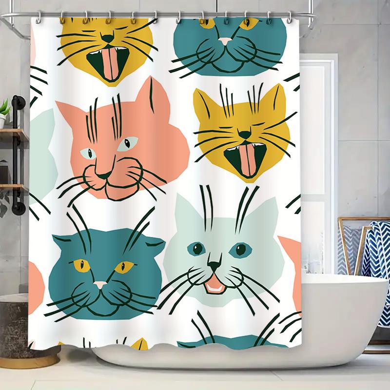 Vibrant Cat Shower Curtain Set Modern Animal Design for Bathroom Decorations 72x84 Inches