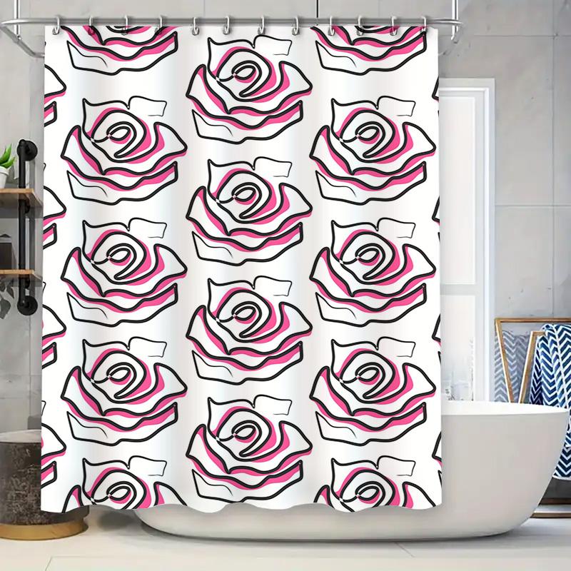 Modern Bathroom DecorFloral Pattern Shower Curtain with Black Pink White Design for Bathtub Decoration In Home Living Room or Ho