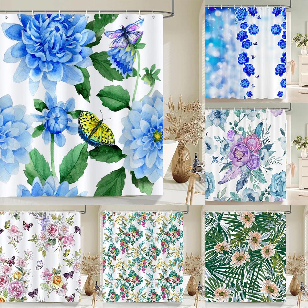 Flower Butterfly Tulip Bath Curtain Waterproof Fabric Shower Curtains Floral Leaf Bathtub Screen for Bathroom Home Decor