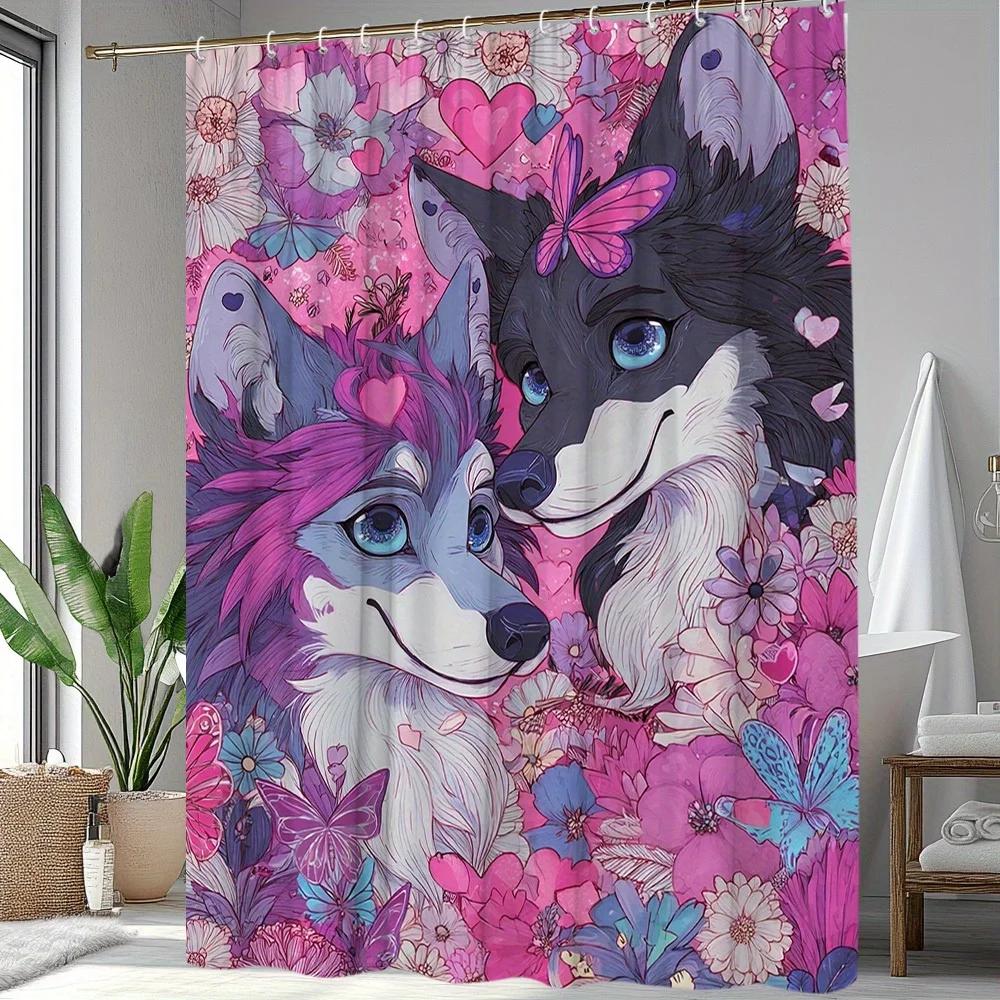 1pc Valentine'S Day Shower Curtain Cute Animal Floral Pattern Wolf and Butterfly Medieval Style Bathroom Decor Polyester Fabric