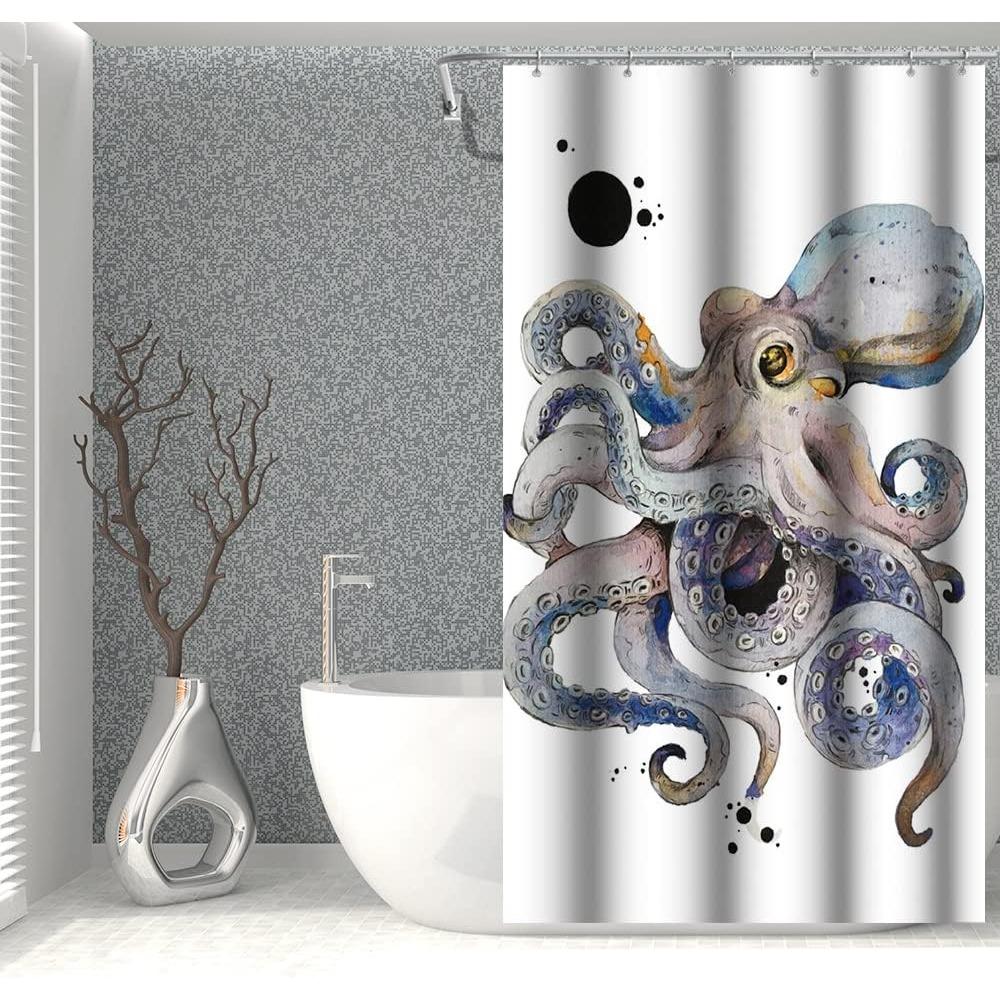 Colorful Octopus Shower Curtain Ink Painting Japanese Kanagawa Kraken Black Dots Design for Bathroom Decor Fabric Polyester