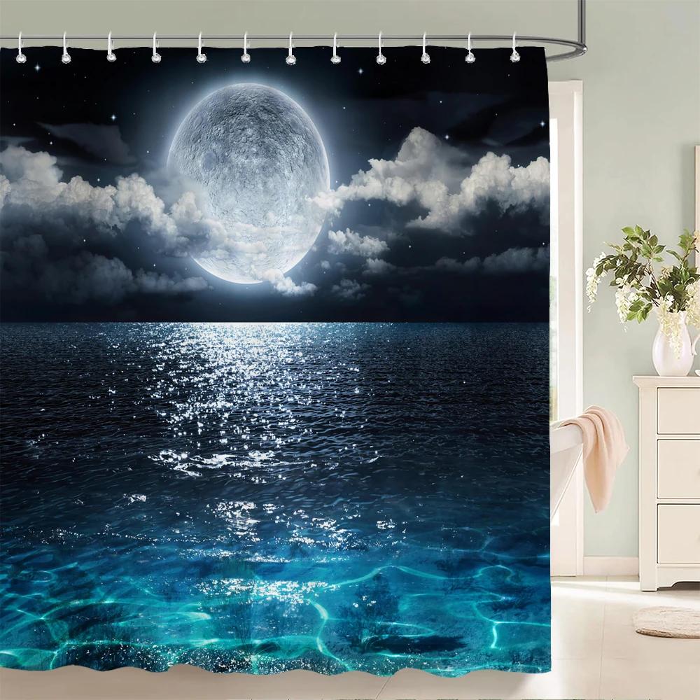 Earth Moon Starry Sky Scenery Printing Shower Curtains Bathroom Curtain Waterproof Fabric With Hooks Home Decoration Bath Screen