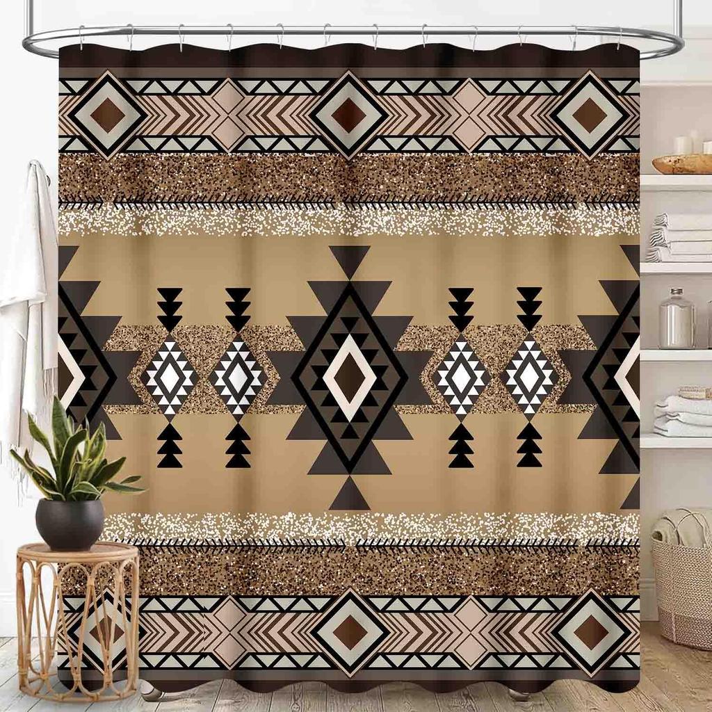Southwestern Natvie Tribal American Ethnic Western Abstract Geometric Vintage Brown Waterproof Fabric Bathroom Shower Curtain