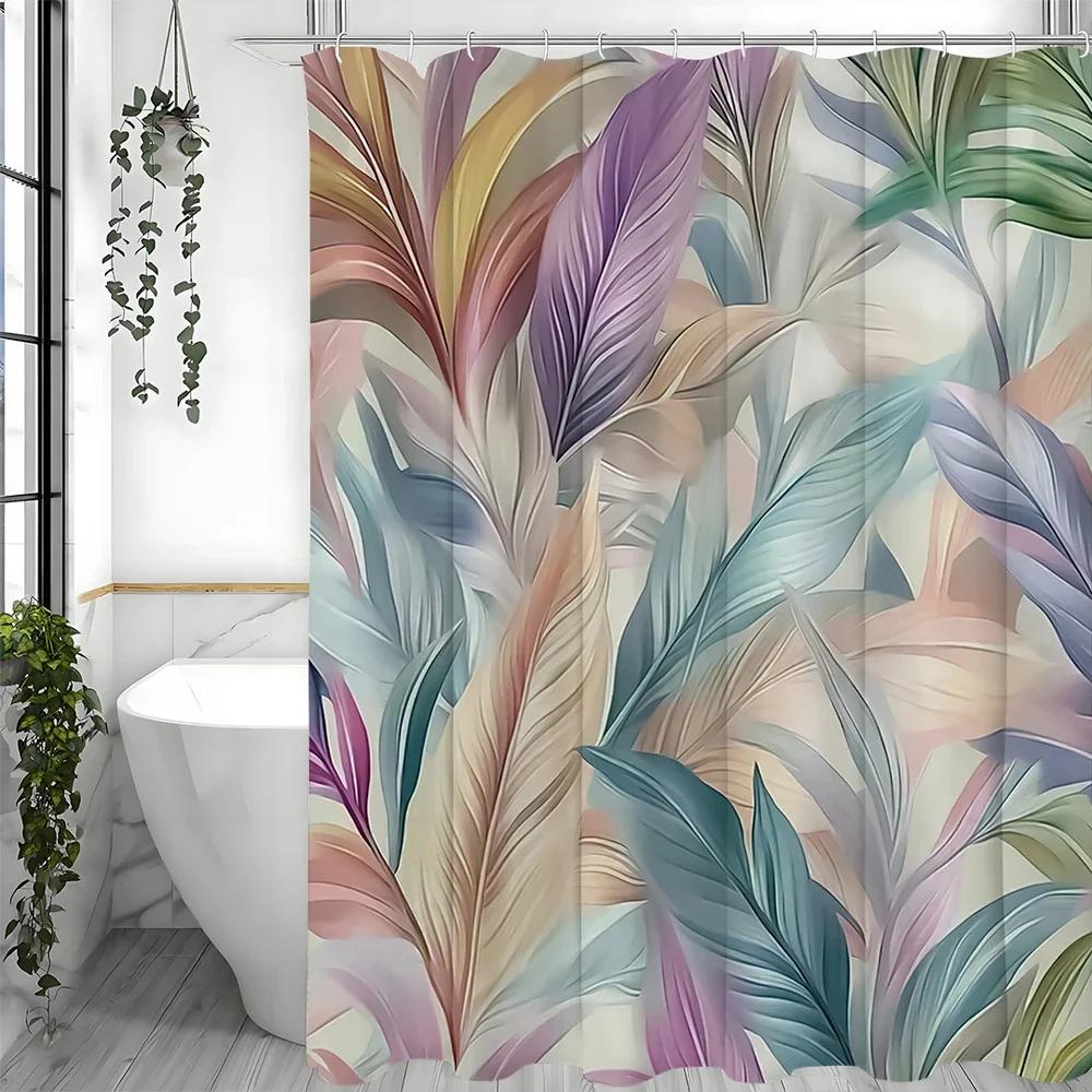 Colorful Leaf Shower Curtain, Bathroom Decorative Shower Curtain, Waterproof Shower Curtain with Hooks