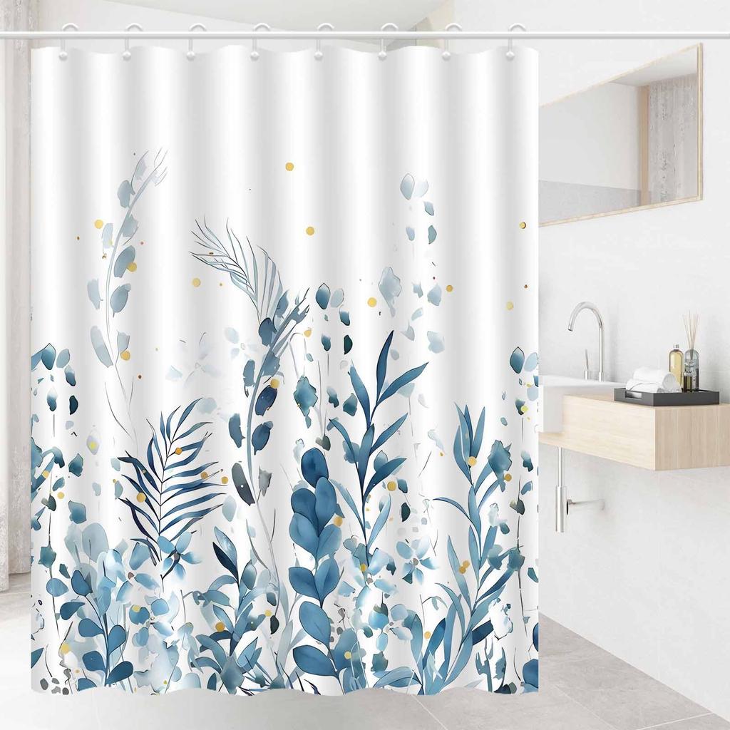 1pc Nordic Modern Fresh Blue Plant Flower Shower Curtain, High-End Elegant Bathroom Curtain, Bathroom Decoration Pattern