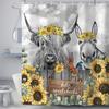 Highland Cow Shower Curtain Rustic Farm Animal Cattle Donkey Pig Chicken Flower Plant Leaves Sunflower Bathroom Decor with Hooks