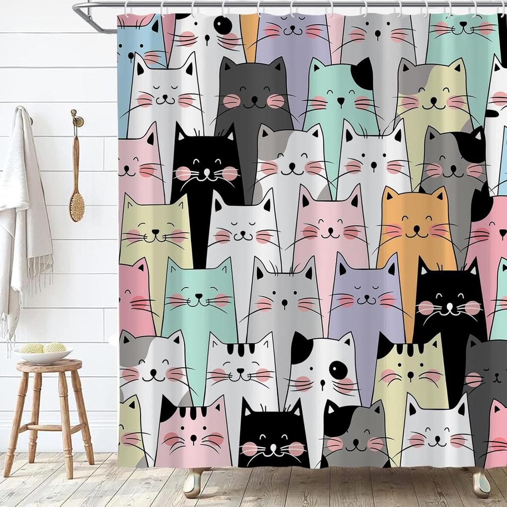 Cat Shower Curtain,Cute Colorful Cat Shower Curtains for Bathroom,Trendy Funny for Adults Cat Shower Curtain Anime Waterproof