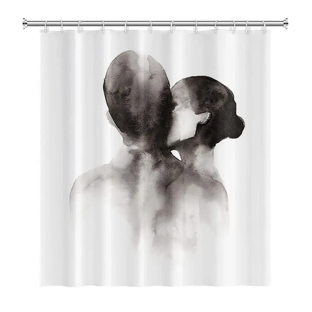 Abstract Hand Painting Shower Curtains Women Sketch Bath Curtain Lover Human Body Minimalist Art Waterproof Bathroom Curtains