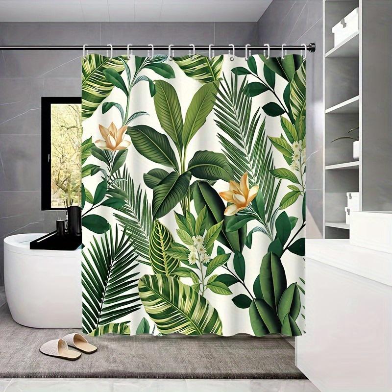 1pc Tropical Leaf Print Shower Curtain - Privacy Bathroom Barrier & Home Decor with Hooks, All-Season Polyester Fabric