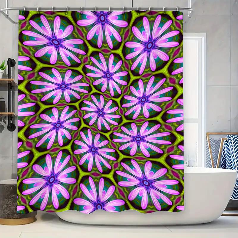 Bright Floral Shower Curtain Set Pink Purple Flower Pattern Bath Decor Waterproof Fabric Shower Panels for Bathroom Decoration H