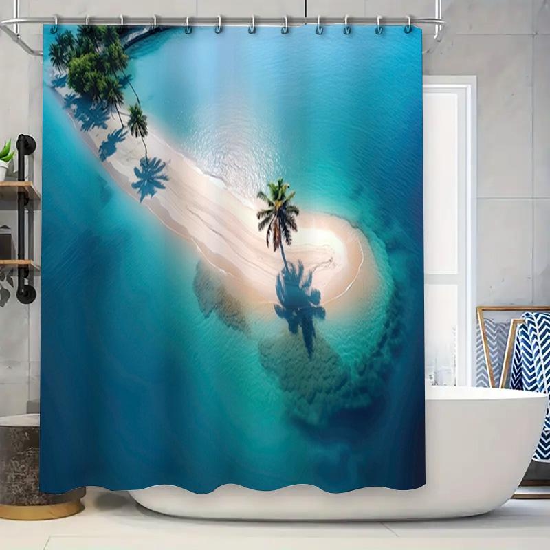 3D Printed Beach Shower Curtain Waterproof Fabric for Bathroom Decor Ocean Blue Tropics with Palm Trees, Size180 X 200 Cm (70x79