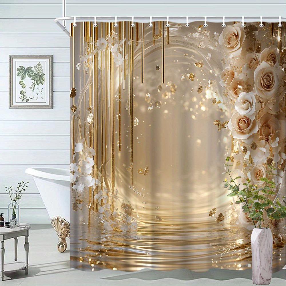 Gold Rose Shower Curtain Elegant Floral Design Luxury Bathroom Decor 3D Print Waterproof Bath Curtain Home Fashion