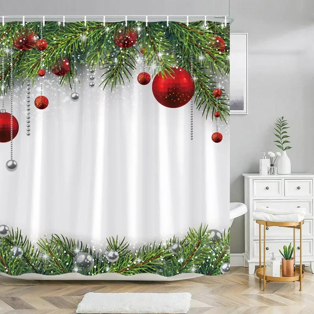 Christmas Balls Shower Curtain Colorful Xmas Balls Green Candy Canes Hanging On Pine Tree Branch for Christmas Ornament Branches