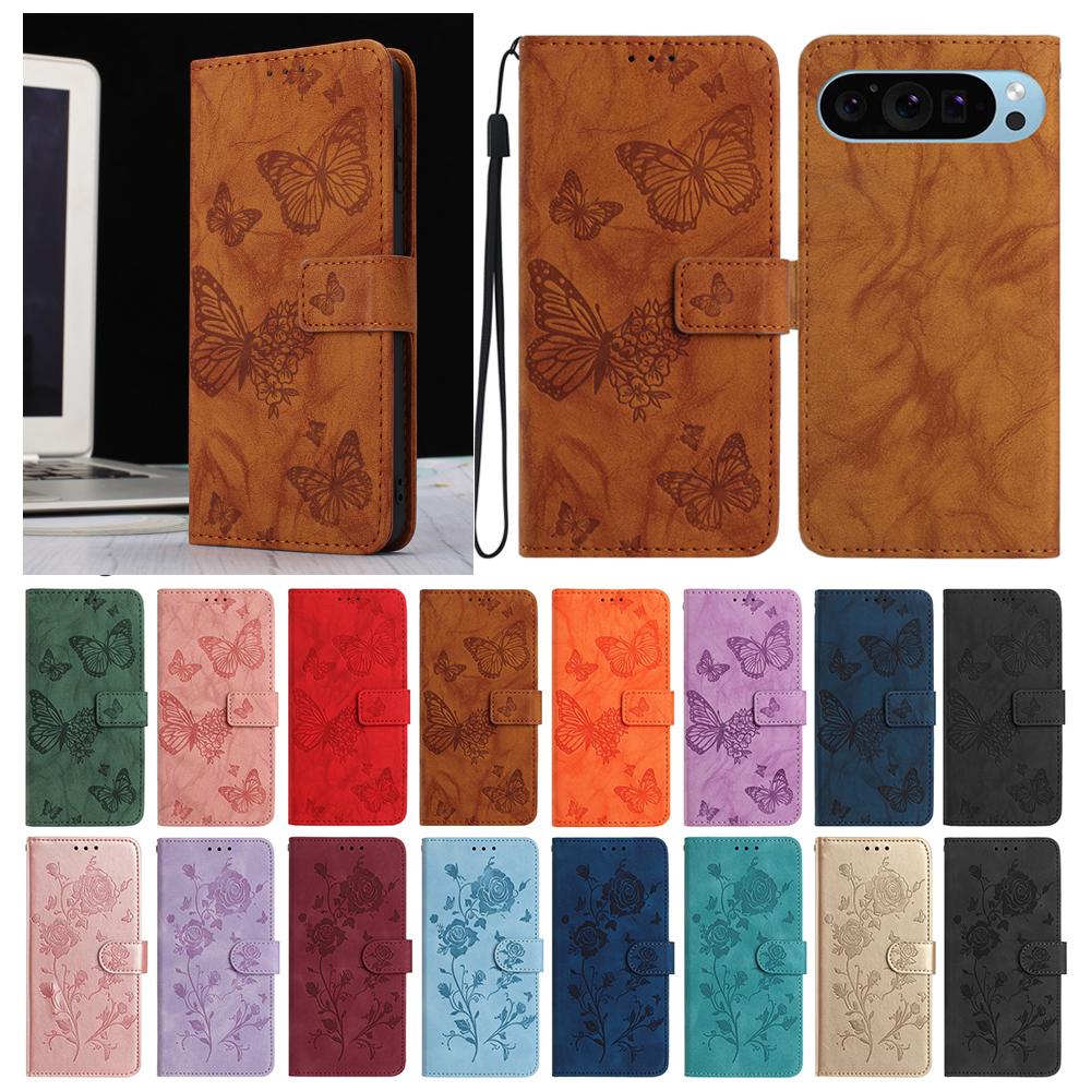 Leather Phone Case For Google Pixel 10A 9A 8A 7A 6A Google Pixel 10 9 8 7 6 Pro Butterfly Embossing Print Card Slot Wallet Cover