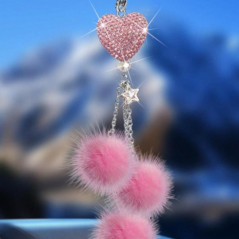 1pc Diamond Encrusted Heart Shaped Pendant Car Rearview Mirror Charm, Women's Car Accessory, Auto Decor