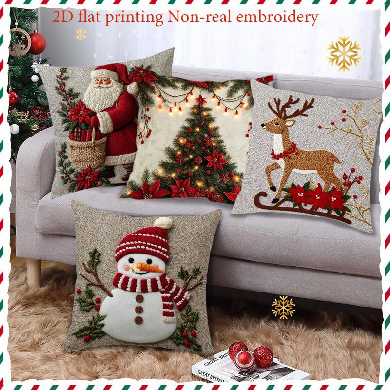 Christmas Cushions with Santa Snowman Deer Tree 2D Flat Printing Polyester Pillowcase, Sofa Cushion Cov Headboard Pillow