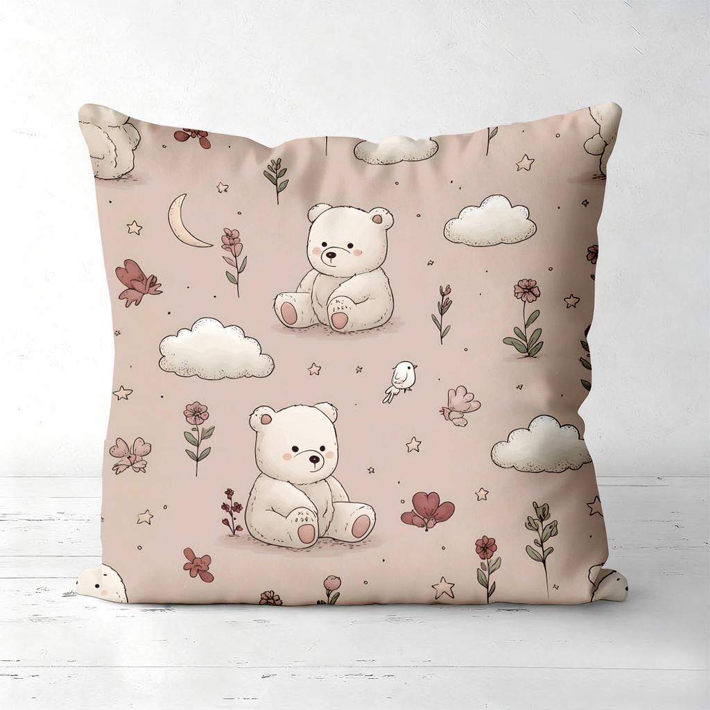 1 Pieces Cute Bear Cloud Flower Pattern Throw Pillow Polyester Pillowcase, Sofa Decorative Cushion Cov Headboard Pillow