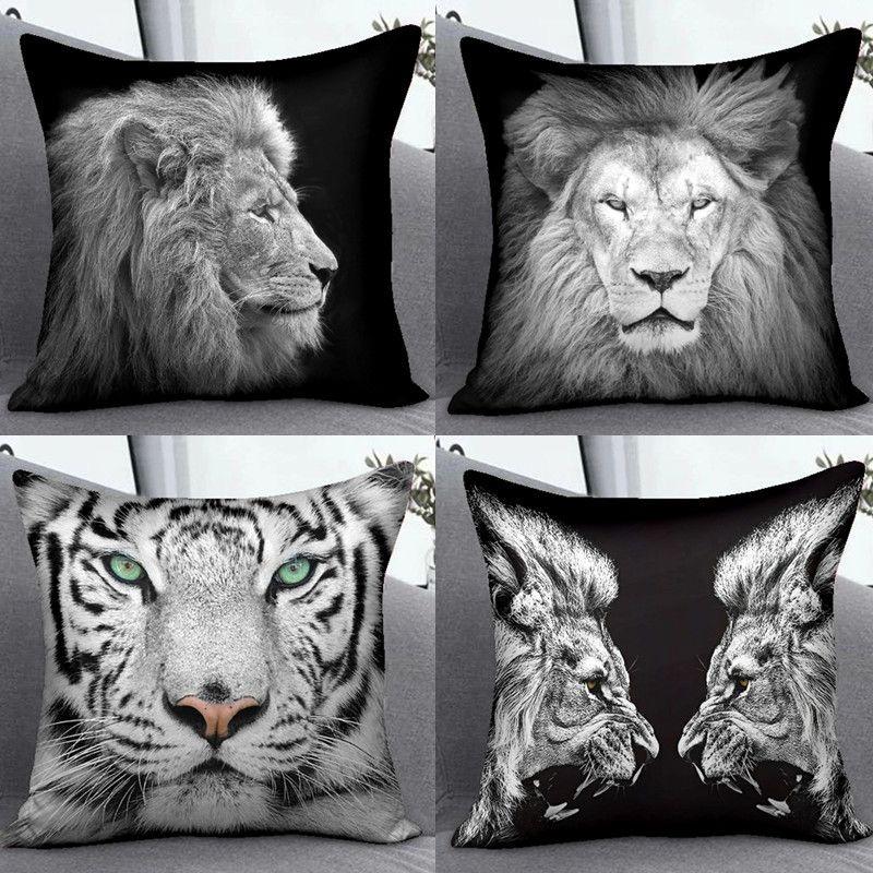 Black and White Personality Lion Pillowcase In The Wind Student Room Decorative Pillow Sofa Cushion Cover Boys Pillow Cover