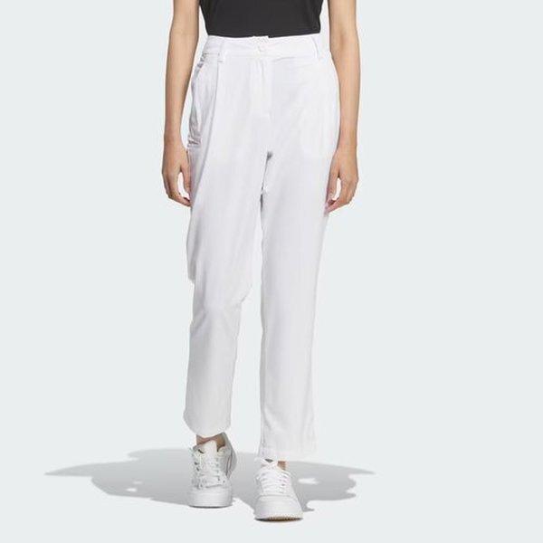 The Adidas Golf Women's 4-Way 9/10 Pants is a 26SS season product that uses a four-way stretch fabric to support freedom of movement. It features a stylish 9/10 length that creates a clean silhouette and offers a relaxed loose fit for comfortable wear. Made of durable dobby fabric, it combines style and performance.