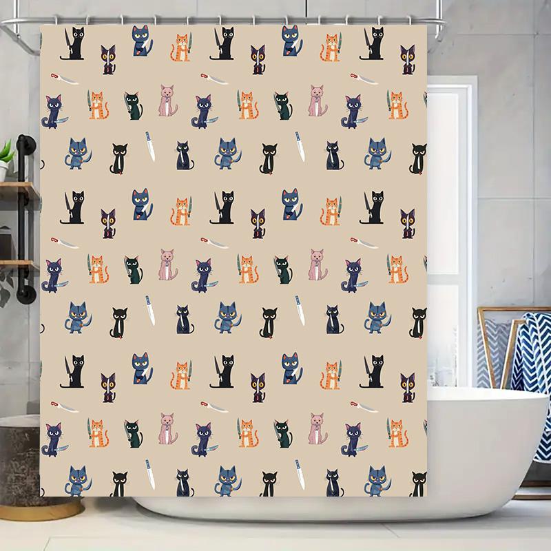 Cats Pattern Shower Curtain Bathroom Decor, Waterproof Fabric, 180 X 205cm Size, Cartoon Print In Multiple Colors .com