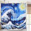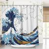 Cool Japanese Asian Art Modern Blue Anime Ocean The Great Waves Kanagawa of Hokusai Aesthetic Waterproof Curtain with Hooks,