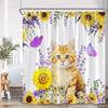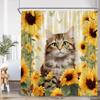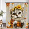 Cute Cat Shower Curtain Flower Cartoon Animal Sunflower Plant Floral Bathroom Home Decor Modern Polyester Bath Curtain with Hook