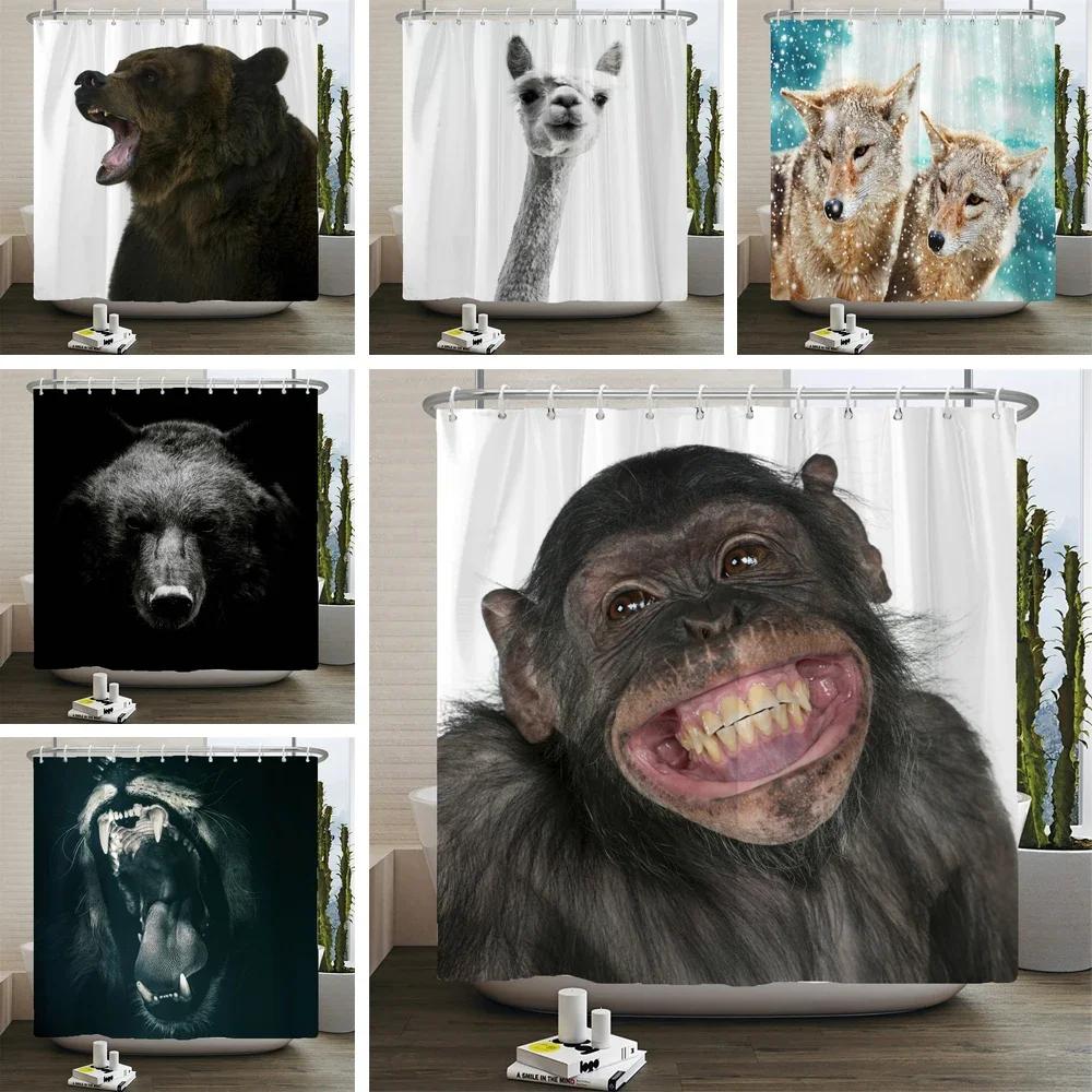 Funny Shower Curtain 3d Bath Curtains Monkey Orangutan Animal Printing Waterproof Polyester for Bathroom Decor Large 180x200cm