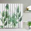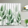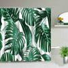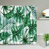 Green Leaves Shower Curtain Monstera Leaf Tropical Plant Spring Bathroom Curtain Bathtub Decor Waterproof Fabric with Hooks