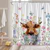 Cute Cow Bull Shower Curtain with Hooks Modern Fashion Funny Western Farm Animal Bathroom Curtain Polyester Bath Screen