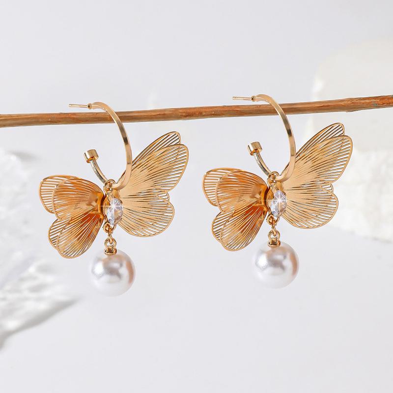 Elegant Gold Butterfly Pearl Earrings - High-End, Trendy & Versatile Fashion Accessory
