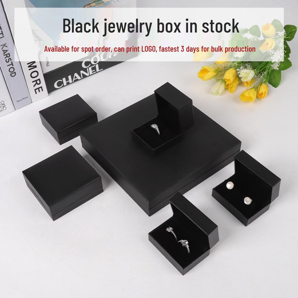 Black Right Angle Flip-top Jewelry Gift Box - Ring & Earring Packaging with Logo Printing