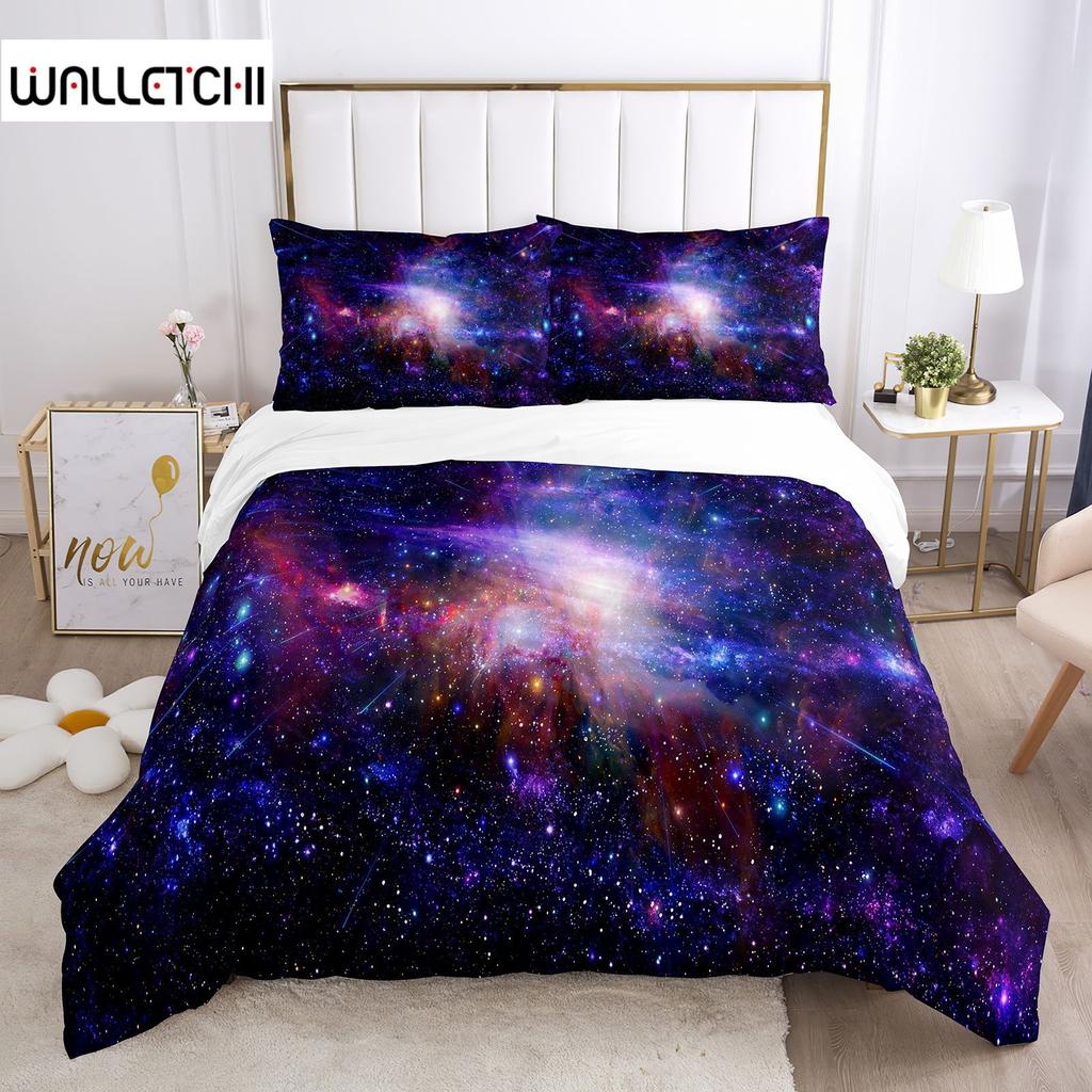Galaxy Duvet Cover King 3D Space Themed Bedding Set Microfiber Soft 3pcs Universe Pattern