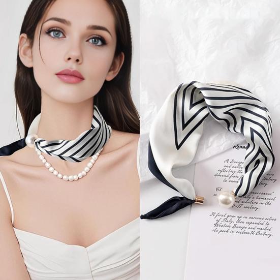 Versatile Styling: This silk scarf choker necklace can be worn in multiple waysdrape it as a neck scarf for a refined look or use the faux pearl buttons to pair with other jewelry pieces for a unique style statement. Its lightweight square shape makes it easy to tie, knot, or loop according to your personal fashion preference.