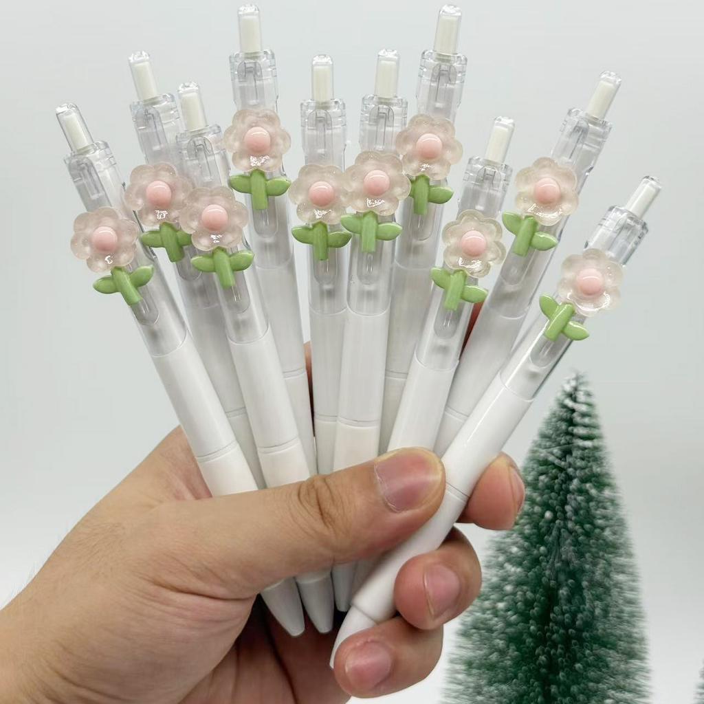 10Pcs Flowers Patch-Themed Retractable Ballpoint Pens - White Soft Grip Pens with Random Flowers Designs, Fine Point, Ideal for Students and Office Us