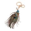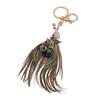 This exquisite peacock keychain features a durable alloy electroplating process, ensuring long-lasting color that resists fading. The meticulously shaped feathers maintain their elegant form without losing hair or deforming, offering excellent wear resistance for daily use. Adorned with sparkling rhinestones and vibrant enamel on the peacock head, it reflects light beautifully, exuding a luxurious and eye-catching texture. Symbolizing auspiciousness and luxury, this unique accessory is highly recognizable and adds a mysterious, exotic charm.